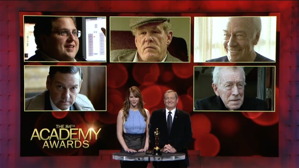 Admittedly, I have not seen Marilyn or Extremely Loud, although I’m a longtime fan of both Branagh and von Sydow. (The fact that Max has only one other nomination in his long career is astounding.) And having just caught up with Warrior, I can see the Nolte hype was legit. I’m thrilled to see Jonah Hill in the bunch, even though I don’t think it was warranted. And Plummer, the surefire winner, deserves every bit of praise he’s received; Beginners is very underrated, and he’s the anchor.