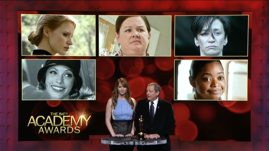 Melissa McCarthy has become her film’s token mention at every award show because while the guard has changed enough for a raunchy comedy—chick or otherwise—like Bridesmaids to create waves, the Academy is way too stuffy to do more than throw them a bone. And it’s funny that Jessica Chastain gets recognized for the role with the least amount of gravitas of the ten thousand she played in 2012. And that’s not saying I didn’t love her in The Help. I thought she was a delight.