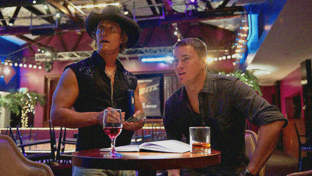 (l-r) MATTHEW McCONAUGHEY as Dallas and CHANNING TATUM as Mike in Warner Bros. Pictures’ dramatic comedy “MAGIC MIKE,” a Warner Bros. Pictures release. Photo by Claudette Barius.