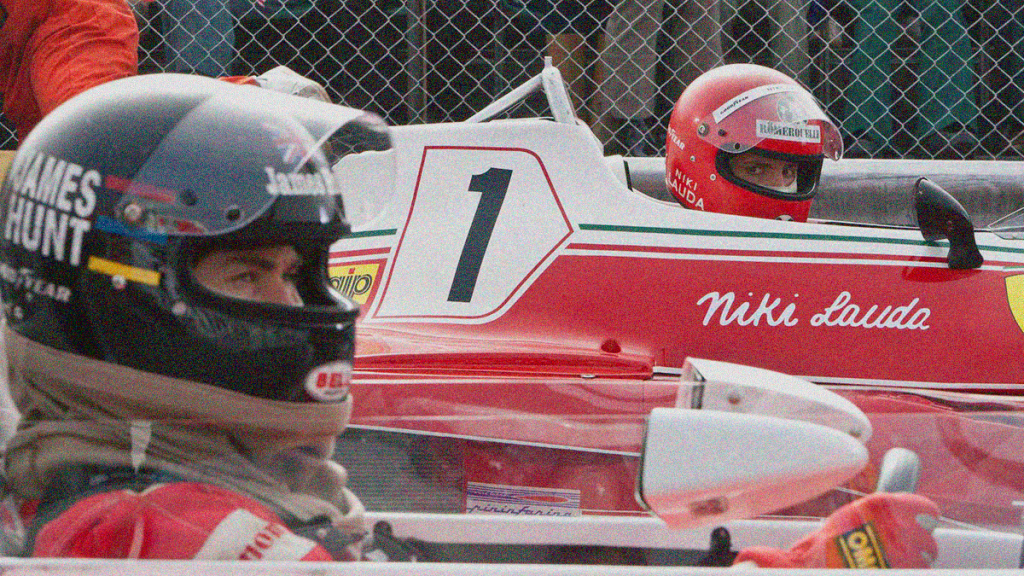 The dynamic between these two men—or at least their characterizations onscreen—is intriguingly gray as far as protagonist versus antagonist. Both are bullies in their own way and both are sympathetically passionate about winning. While it’s easy to root for Hemsworth being the heart-on-his sleeve combatant against the Austrian robot, watching him constantly pick on the friendless Lauda can easily sway you to the other side. They are also each other’s drive, though, pushing forward to the brink so that they can improve every race until it becomes them against a field sitting a distant third and beyond. But what really makes the story and the film captivating is its central truth that these men ride around those tracks with only an eighty percent chance at best of living. That’s their common enemy.