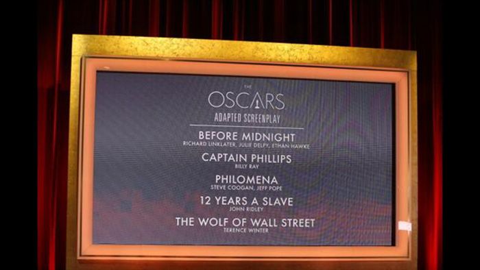 I always feel funny about the screenplay categories. What difference does it make if the work is adapted from a different source? It seems like a distinction that doesn’t need to be made, particularly when, as is the case here, I am unfamiliar with the original source material? It amounts to two bites of the apple for the screenwriters, since the award isn’t really about how well the material was adapted. My other problem is that I am pretty solidly an auteurist. What I see on the screen is what the director put there—most of the time—so evaluating the work of the screenwriters seems daunting to me. All that said, it seems to me that Philomena was a performance movie, not a writerly movie; likewise Captain Phillips. Swap out either lead for another equivalent actor and you have two entirely different movies. I don’t see Wolf of Wall Street running the table, but it’s a hell of a movie, and I wouldn’t be surprised to see it win here. Before Midnight is the culmination of an amazing collaboration. It would be great to see it win, and it is the movie I’ll have my fingers crossed for, but I think that 12 Years a Slave is what will take it. 12 Years really is an important movie, and it is the kind of movie that people like to give awards to.