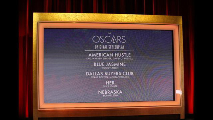 An abundance of riches here—each of these were movies that I walked out thinking that I’d seen something really, really good. As with Philomena I think Nebraska is mostly about the performance of the lead. To some extent I think the same can be said of Dallas Buyer’s Club as well. Her, for me works as well as it does because of Spike Jonze’s direction, to the extent that the distinction can be made at all. If Blue Jasmine is going to be recognized it will be for Cate Blanchett’s performance. Woody may not be all that toxic in Hollywood, but that doesn’t mean that the Academy is going to fall all over itself for a guy who isn’t even going to show up to say thanks. American Hustle (Eric Warren Singer, David O. Russell) is an easy pick, and I agree with you that it’ll win.