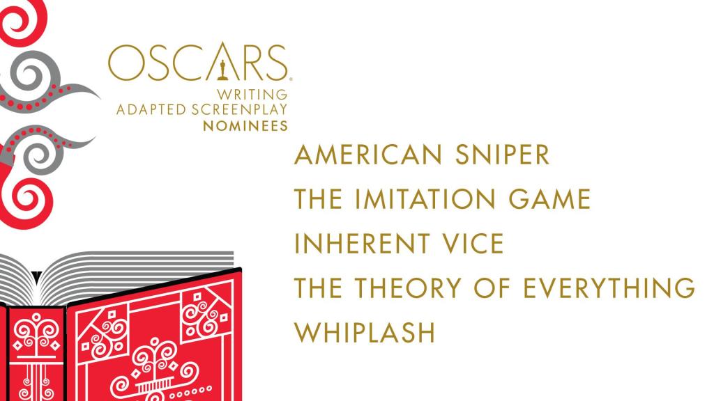 No way Hollywood gives this prize to American Sniper. That is too fraught, and you know what? I’m fine with that. I thought it was a despicable movie. I’m rooting for Inherent Vice, but Thomas Pynchon will probably not be in the audience, and both The Imitation Game and The Theory of Everything are more likely. That said, I think this is where Whiplash gets its prize. And I agree that Wild deserved consideration here.