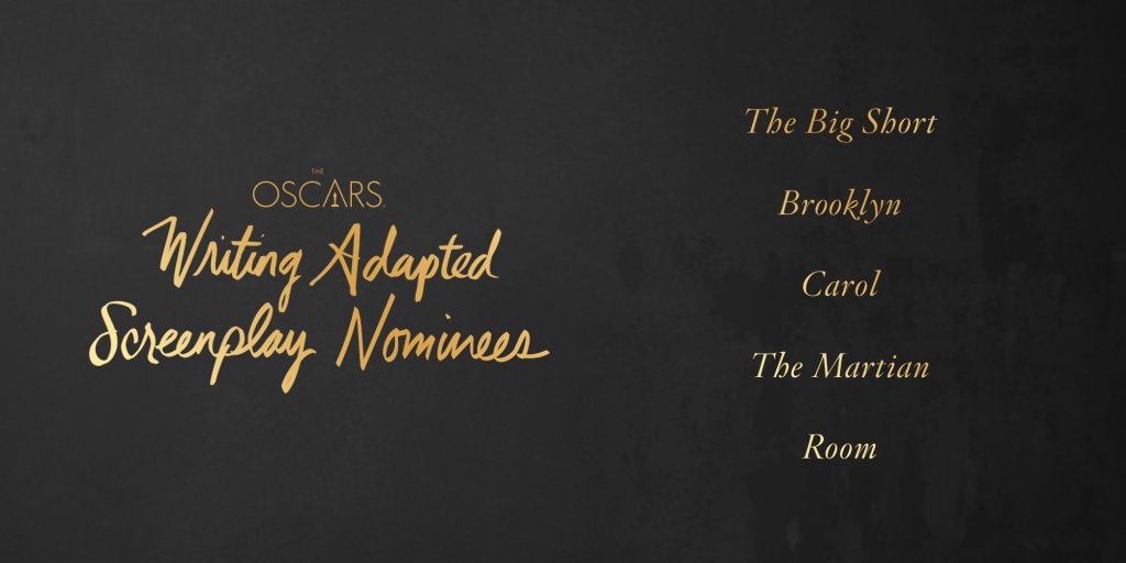 Interesting. I’d agree that The Big Short is the one that probably doesn’t belong here (and I liked the movie a lot more than you did). To me it was a director/editor’s movie and I’m glad we’ll be talking about McKay shortly despite his less than appealing oeuvre and his inclusion causing another director’s snub. I get that the book it’s based on doesn’t necessarily have a story (I remember Michael Lewis’ Moneyball adaptation was highly lauded for this fact too), but if that’s the case just call it original.