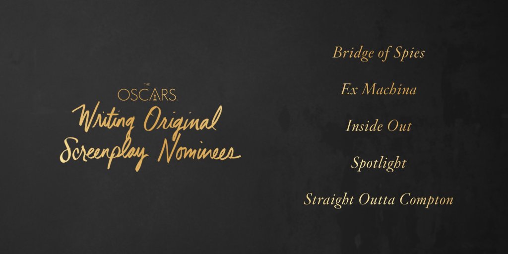 An even bigger shock? Straight Outta Compton. I loved the film and would have rejoiced with it being jammed into Best Picture, but the screenplay wasn’t something I left the theater in amazement about. Maybe that’s why it’s so good? Because it’s so natural? I don’t know. Maybe it was the voters inadvertent plea to defuse the whole #OscarsSoWhite campaign before it began.