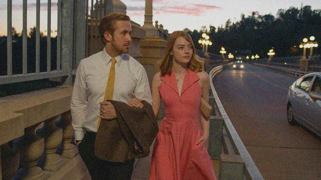 The city’s a character as the opening number “Another Day of Sun” exclaims via its massive stand-still on the LA freeway with brightly colored choreographed excitement ending upon the caption “Winter.” It’s a world of dreamers—natives and transplants alike—who have converged upon a city of beautiful urban landscapes and more hope than reality can ever fulfill. Mia (Emma Stone) has come from Boulder City, NV for acting success only to find an unforgiving job as a barista on the Warner Bros. lot and disrespectful casting agents leading too-quick auditions for work that only sounds good when you’ve secured a role. Sebastian (Ryan Gosling) finds himself in downtown LA because of its expansive jazz history, but he’s been relegated to playing Christmas songs because of Kenny G.