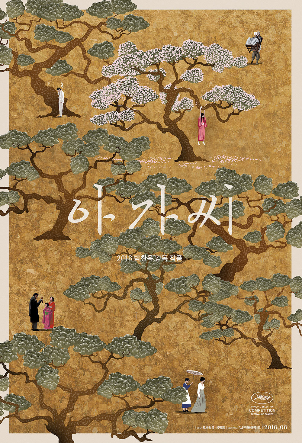 As meticulously ornate and austere as the film, Empire Design’s The Handmaiden is breathtaking. It’s reminiscent of paintings by the likes of Hokusai (whose The Dream of the Fisherman’s Wife is seen onscreen) — illustrative depictions of nightmarish beauty. The English version is given more freedom with its limp, hanging body and naked kissing; the Korean iteration more fluid and eye-catching with intertwined title and white-leaved tree. They’ve created a piece of art that can’t help but dwarf those by its side through shear ambition and skill. It’s a statement that lingers in one’s mind like posed actors in photograph never could.