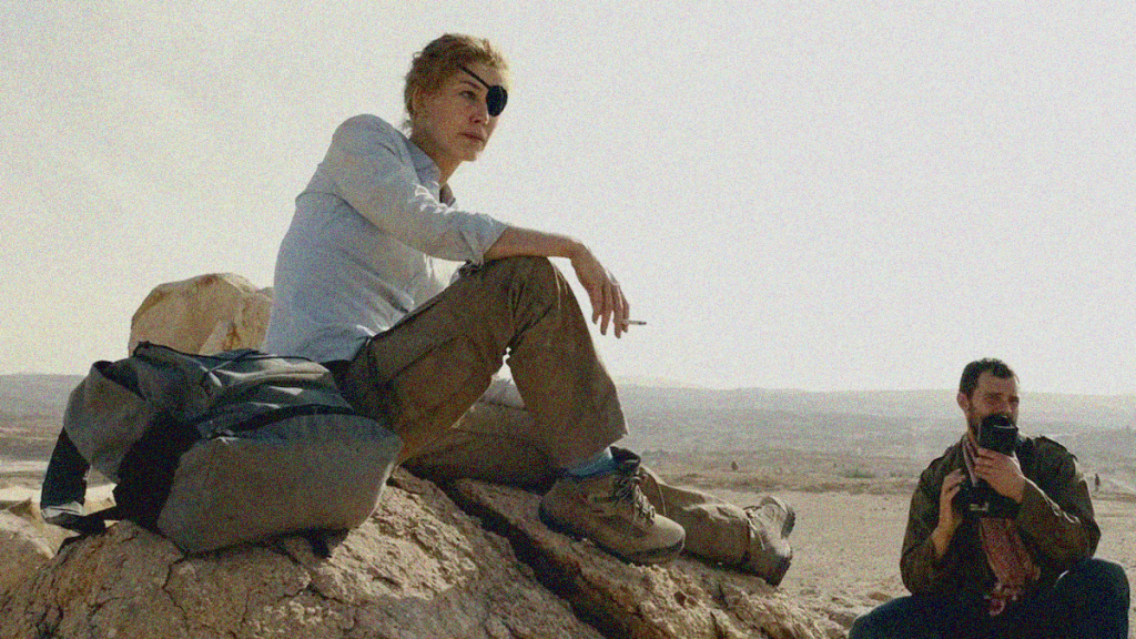 Enter documentarian Matthew Heineman and his narrative debut A Private War. Based on a Vanity Fair article by Marie Brenner (“Marie Colvin’s Private War”), screenwriter Arash Amel delivers an eleven-year countdown before Homs to get into the mind of Colvin and attempt to better understand her drive and demons. Heineman then takes us into the war zones of Sri Lanka, Iraq, Libya, and Syria to reenact the danger and suspense of what embedded journalists go through on a day-to-day basis. He must go even further than that, though, as Colvin (Rosamund Pike) wasn’t your run-of-the-mill reporter looking to broadcast just close enough to the action to make it seem real. No, she would ignore the military’s instructions and head out without protection. She was a moth to flame.