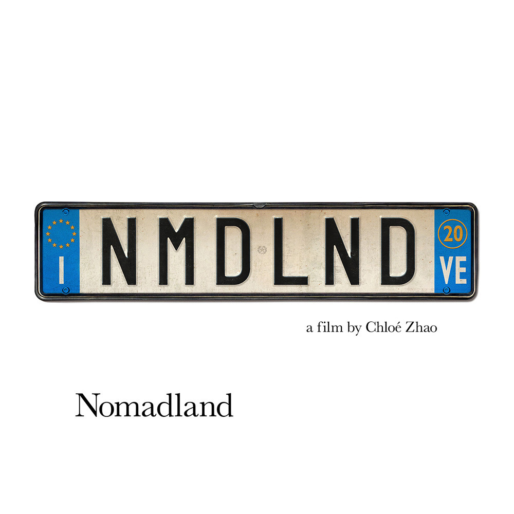 Concepts as simple and singular as Searchlight Pictures’ in-house campaign for Nomadland have a tendency to make you believe graphic design is easy and yet the time, effort, and tweaking that go into them sometimes reveal more work than their elaborate counterparts. First there’s the decision of which license plates to choose—aesthetic, font, and state all must be considered. Do you line them up or create movement with subtle y-axis slides? Do you dare let it standalone on white? The dirt, rust, and aging of the metal provides character, the conceit an ingenious ready-made festival-centered offshoot of personalized siblings. Nomadland becomes its place without an address, a dream without borders.