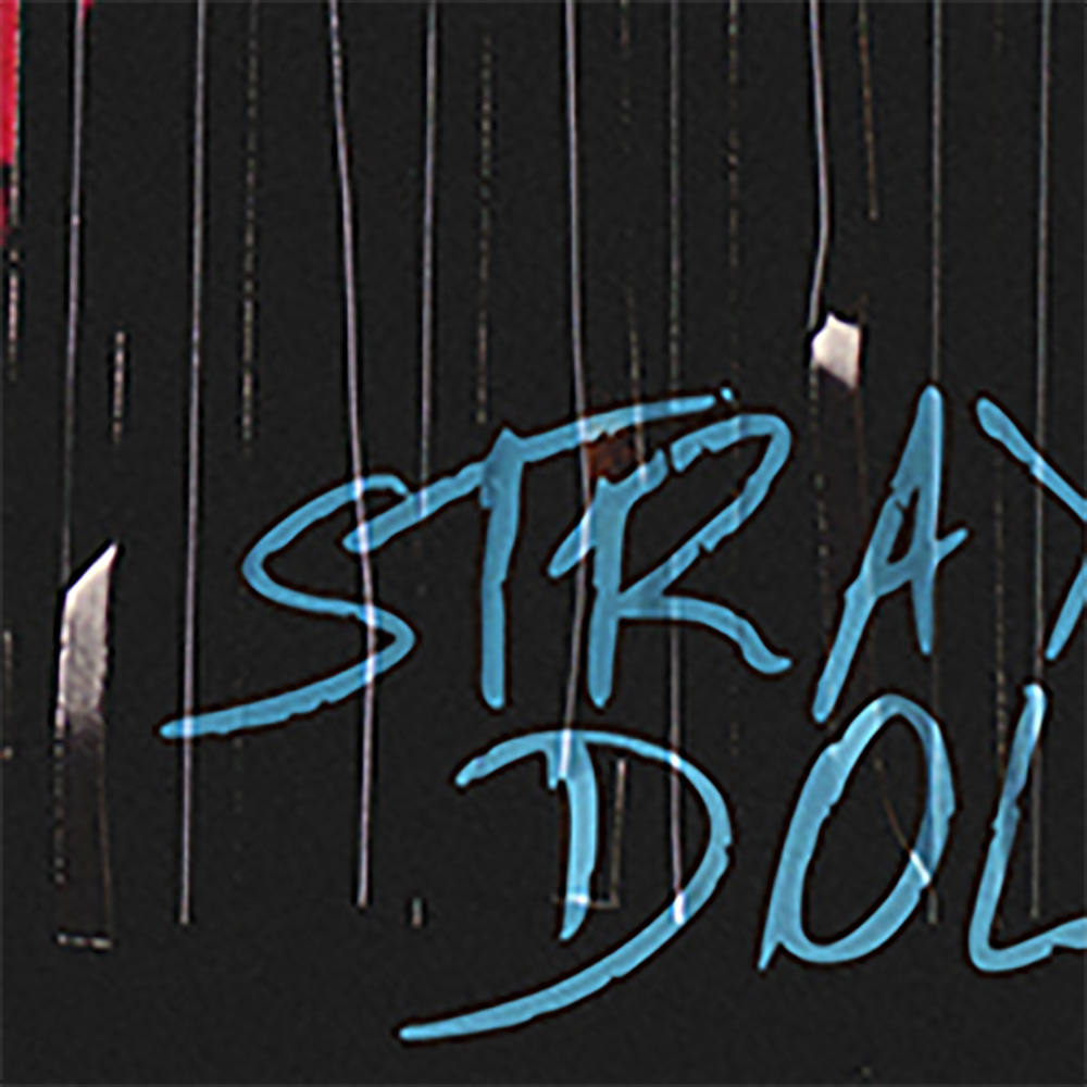 Caspar Newbolt and (version_industries) take that sense of barrier through line work one step further to create a piece for Stray Dolls like only they can: dark, evocative, and eccentrically off-kilter in an almost discomforting way. Our vision is in constant flux like an optical illusion, shifting back and forth between the woman looking down on the page and the woman on the phone behind it. There’s a sense of before and after … or perhaps lost and found when you bring in the title. The red hue supplies connotations of danger that the cool blues beneath—via depth (the second face) and direction (the text)—contrast less with the promise of safety than the allure of mystery.