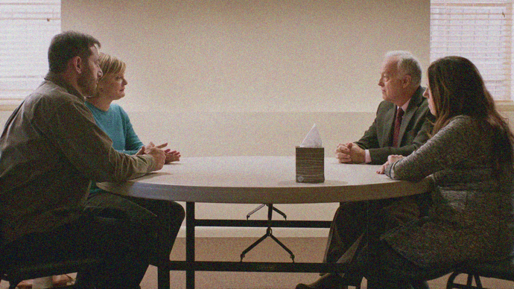 That’s a word that will arise when talking about the topic at-hand outside of its depiction. How can it not? School shootings are almost as politicized as abortions in the most perverse way considering so-called “Pro Life” activists on the latter subject would rather preserve the warped fallacy that a document ratified in 1791 protects their “right” to own military-grade automatic weaponry than protect their children’s lives. To therefore hear how Kranz’s film places the parents of a victim of one such incident across from the parents of the perpetrator who murdered him is to light a fuse that can only be extinguished by watching what it contains rather than presuming what it does without evidence. Because despite a heated moment of debate, politics are intentionally left out.
