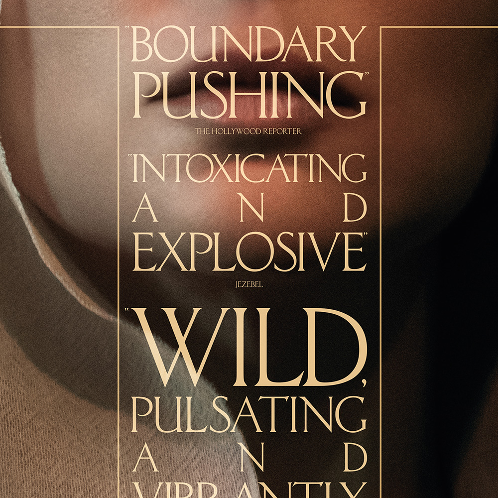 Intermission Film goes above and beyond with their poster for Benedetta. Rather than find a way to crop or shift Virginie Efira’s portrait and free up enough space for the credits and critic quotes, they decide to go the text-on-face route with a twist. Enter the outlined crucifix as barrier, expertly placed to augment the actor’s features with eyes serving as horizontal beam opposite the straight vertical from forehead to mouth. It’s elegantly drawn with its thinly serif-ed typeface and provocative with its ruddy internal glow upon Efira’s distant stare. Add buzzwords like “Violence,” “Sex,” and “Wild” to the mix and the juxtaposition necessary to anticipate what’s coming is implicit with zero nipples needed. Is this Sister a vision of piety marked by the cross? Or has it been positioned as our protection from her sins?