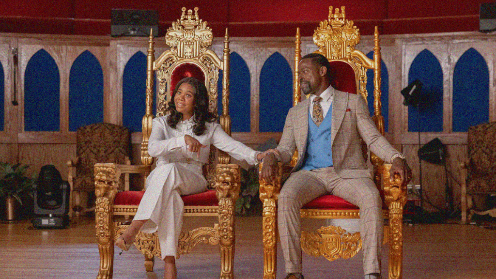 Lawsuit settlements don’t pay for themselves. If anyone should know this fact, it’s a Baptist pastor of his own super church bordering on Evangelical tithe-vacuum who’s been accused of a few “indiscretions.” Is Lee-Curtis Childs (Sterling K. Brown) a criminal? While the answer to that question is debatable, his victims’ lawyers didn’t seem confident they could get a jury to label him as such via a criminal trial. So, they went civil instead, knowing Childs couldn’t refute the allegations. At best he could play a game of semantics to recontextualize them. Either way, what had been a congregation of twenty-five thousand was now a congregation of zero. He and his wife Trinitie (Regina Hall) closed the doors to quell the flames. Sadly, empty pews don’t pay lawsuits either.