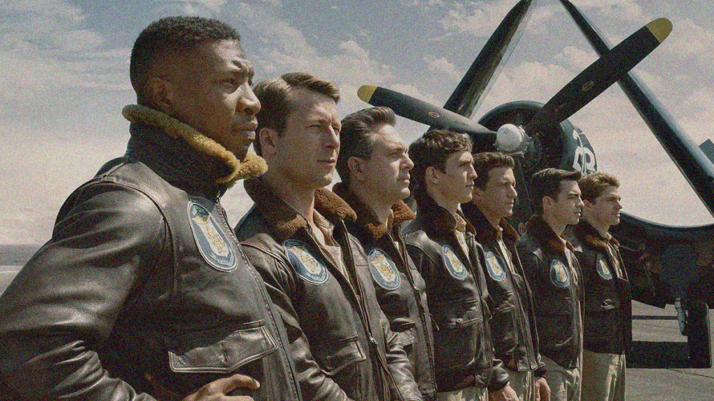 Majors plays Jesse L. Brown, the first Black aviator to complete the U.S. Navy’s basic flight training program—an extraordinary feat considering the gauntlet of racially-motivated challenges his character describes throughout the film. Powell plays his wingman Tom Hudner, a Lieutenant transferring into his squadron shortly before they are deployed for real action. None of them have been to “the show” before. Too young to fight in WWII, they wondered if they’d ever do more than drills and exercises when the Korean War begins. They prove up to the task.
