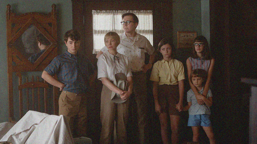 (from left) Sammy Fabelman (Gabriel LaBelle), Mitzi Fabelman (Michelle Williams), Burt Fabelman (Paul Dano), Natalie Fabelman (Keeley Karsten), Reggie Fabelman (Julia Butters) and Lisa Fabelman (Sophia Kopera) in THE FABELMANS, co-written, produced and directed by Steven Spielberg. Copyright © Storyteller Distribution Co., LLC. All Rights Reserved. Merie Weismiller Wallace/Universal Pictures and Amblin Entertainment.