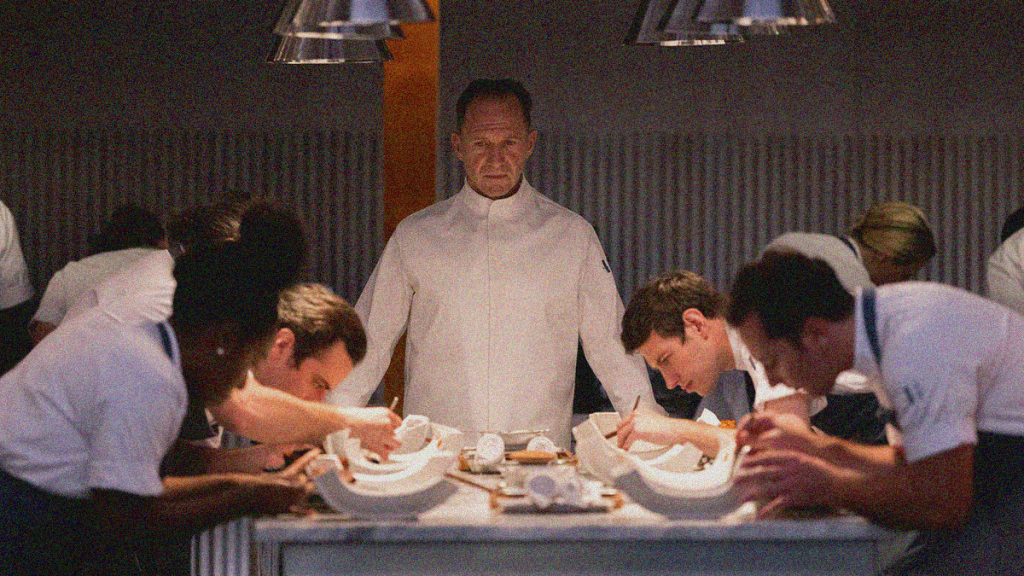Every time Chef Slowik (Ralph Fiennes) claps his hands to mark a new course, the entire dining room jumps in fright. And that’s before they discover they should be afraid. Because this exorbitantly-priced, exclusive seat at Hawthorne comes with a twist … but I’ll leave that to director Mark Mylod and screenwriters Seth Reiss and Will Tracy since the reveal proves an unforgettable moment of confusion insofar as believing whether what we’ve seen is real or part of the show. We want to assume the latter due to the theatricality and surreal absurdity of it all. Yet the longer we stay with these characters (guests and chefs alike), the more we understand that intent is everything.