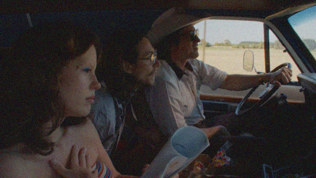 (L – R) Mia Goth, Owen Campbell, and Martin Henderson in X. Courtesy of A24.