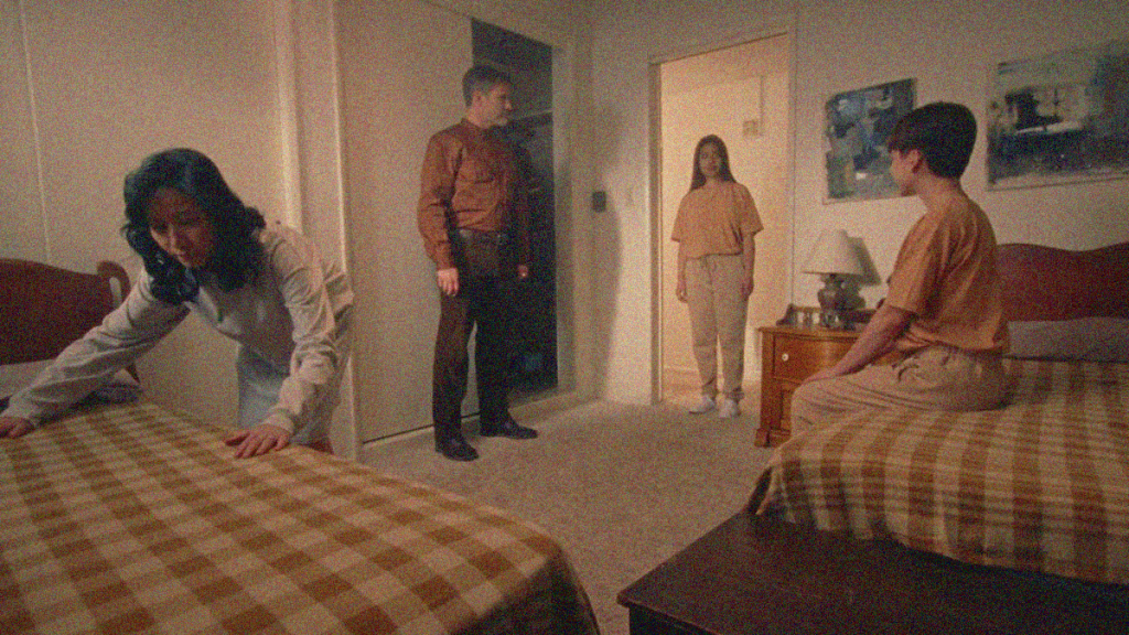 (L-R) Elyse Dinh as Mother, Casper Van Dien as Father, Vivien Ngô as Sister, and Ian Alexander as Brother in the thriller film, DAUGHTER, a Dark Star Pictures release. Photo courtesy of Dark Star Pictures.