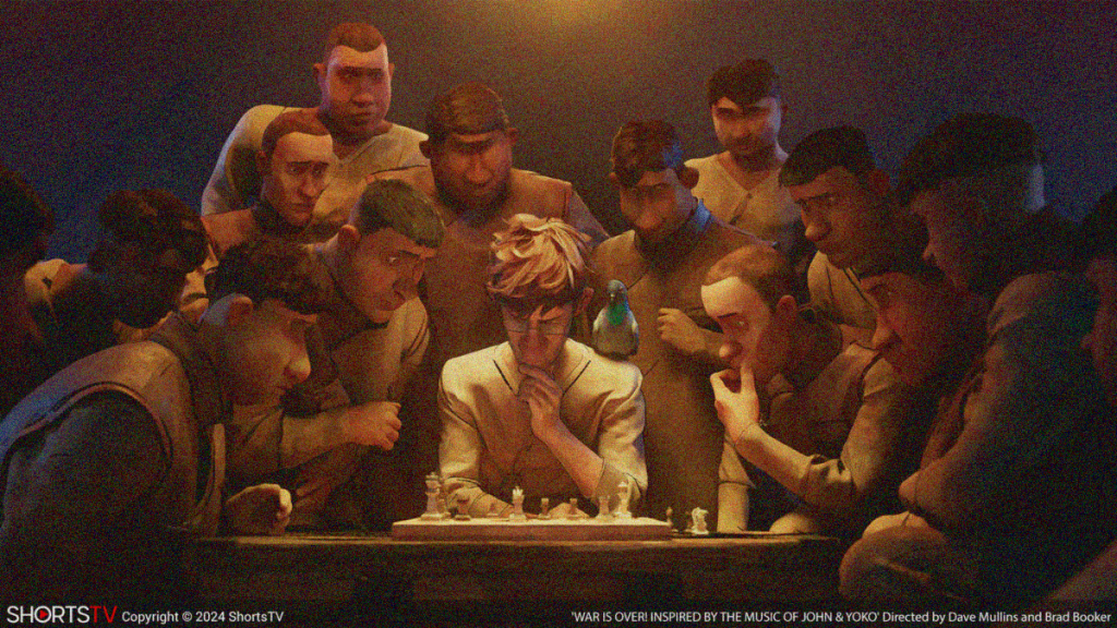 There might not be a more naïve war film than War is Over! Inspired by the Music of John and Yoko, but its animation is quite wonderful. It feels like rotoscoping with its authentic human motions while the sweeping cinematography lends a fantastic sense of place and energy, despite everything occurring a few hundred yards away in the trenches on either side of a WWI “no man’s land.” And between its two main enemy combatants lies a memorably emotive carrier pigeon who clandestinely ferries chess moves in lieu of official orders.