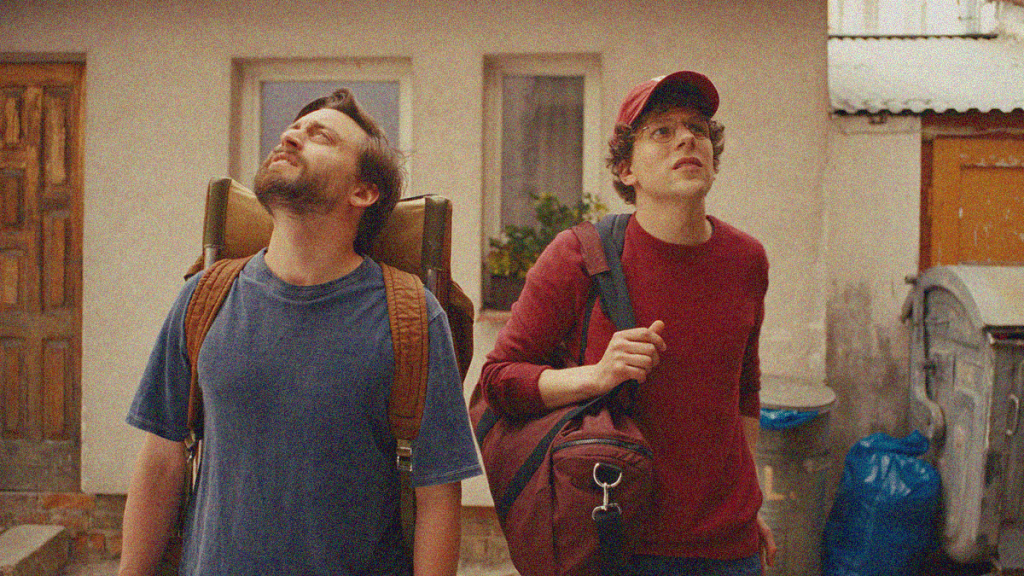 The first time we see Benji Kaplan (Kieran Culkin) is sitting down inside the airport with a thousand-yard stare that doesn’t seem like it would be easy to break. We don’t yet know what haunts him, but it’s obvious something does. And because we get that shot before his manic reunion with cousin David (Jesse Eisenberg), the whole over-the-top excitement carries a deeper level of distraction and avoidance. So too does his penchant for forgetting what it is he’s currently doing and/or the origin of things in his possession. Benji isn’t trying to steal David’s trail mix. He’s just so prone to dissociative behavior that he genuinely believes the bag being in his hand means it’s his.