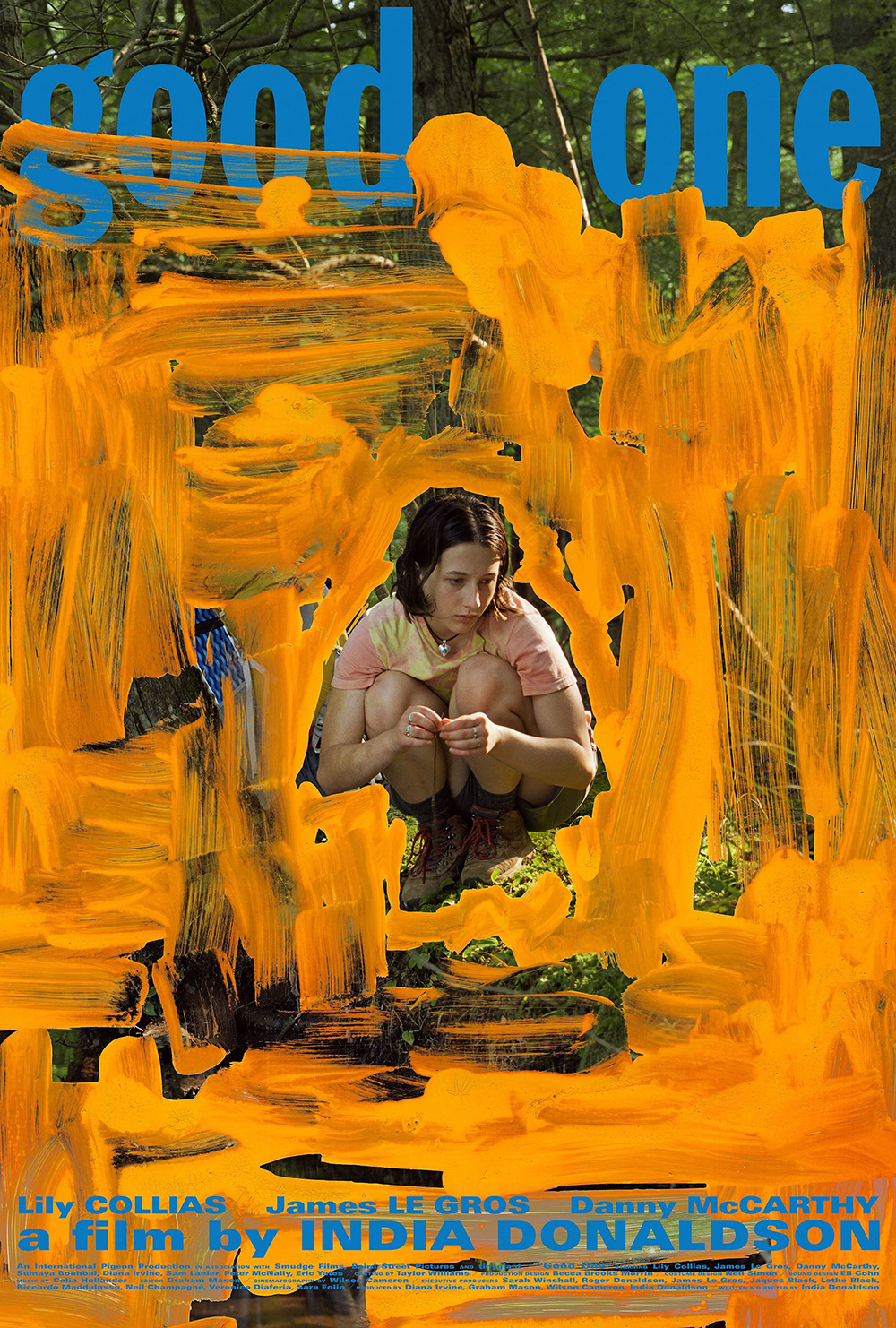 What an image by Tracy Ma for Good One. She takes a photograph by Eric Ruby and paints over it in a way that isolates a crouched Lily Collias at its center—consuming her whole while also blocking out the external noise. There’s a lot to cover too. That comes with being an unwitting third wheel once their camping quartet becomes a trio. Not only must her Sam combat the rhetoric thrown her way by her father and his best friend, but she must also play peacekeeper when the rhetoric between them grows too volatile for her sanity and safety. The difference now, as opposed to the past, however, is that she refuses to continue being their mother/wife hybrid. Those chaotic brushstrokes therefore adopt a third metaphor as pent-up emotion preparing to be unleashed. Sam’s rising with agency to escape the fire and reveal how it was never her job to protect them. They were supposed to be protecting her.