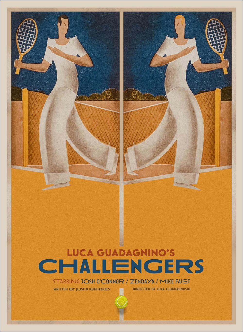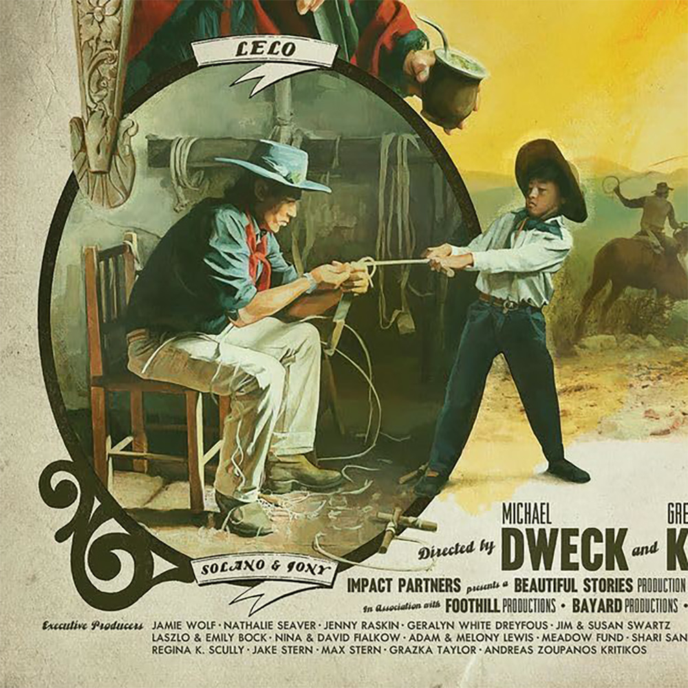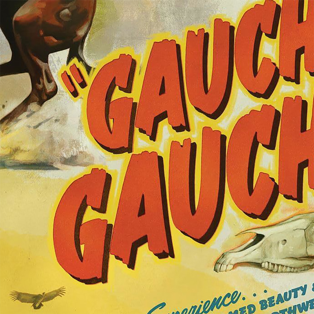 If your subject is a community of cowboys that seemingly exists outside of time, why not enlist an illustrator to manufacture a poster that follows suit? Enter Michael Koelsch and the decision to pay homage to vintage westerns of Hollywood’s bygone era with Gaucho Gaucho‘s bold, drop-shadowed titles in quotations and detailed portraiture framed amidst action-packed vignettes tied together by sunset yellow and canvas beige. You can smell the mud and manure as you imagine spying this gorgeous piece nailed to the side of a saloon. You can see the scripted buzzwords flashing on-screen as a silent trailer with orchestral accompaniment grabs your attention with its exotic Argentinian locale. This one-sheet transports us via our nostalgia to discover how these men and women kept the culture of our past alive and well in their present.