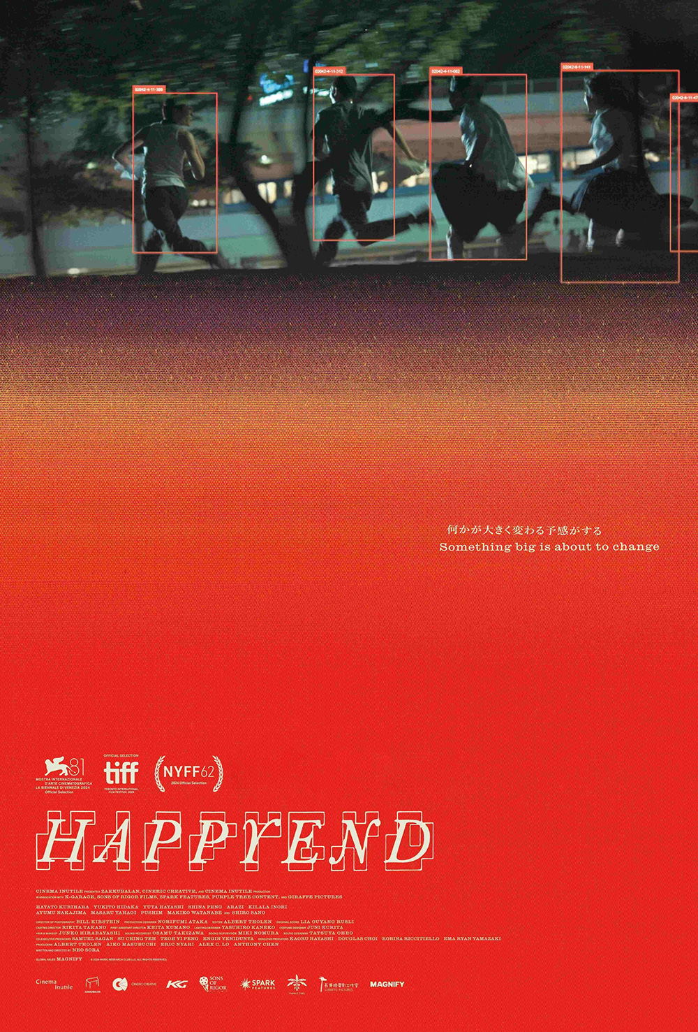 I adore the pixalated texture of Studio RAN’s HAPPYEND and how it mimics the lo-fi tracking scan of video upon a television screen. It adds to the voyeur nature of the film’s Big Brother technology that watches and judges the teenage students it seeks to reprimand via a series of demerits. We understand their drive for freedom—to run from an oppressive system and the pressure to become what you’re told rather than who you dream. It’s another great use of white space and even better typography with the addition of the above surveillance boxes trying to identify each letter too.