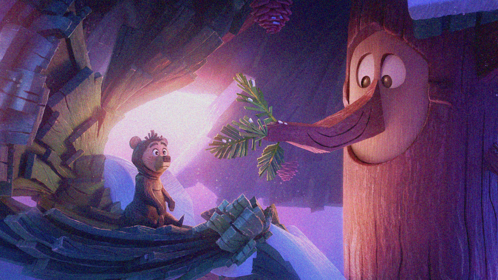 This truth fits the story as its heartfelt narrative of an evergreen tree saving and raising a young bear cub could easily be seen as an anti-AI metaphor. Yes, the Bible verse and thanks to God during the credits show that surely wasn’t its intent, but a message about sacrifice and love can apply to many different subjects. That its main point of conflict arises from the bear spurning its protector to pursue the empty calories of potato chips on an ill-advised adventure that risks destroying the whole forest, one can’t ignore the allusion.