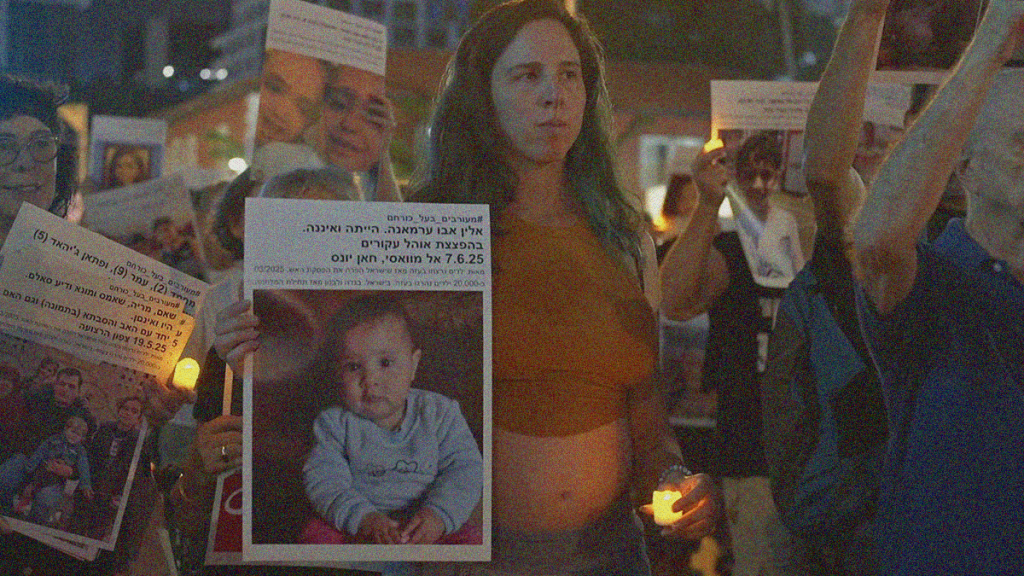 Because it’s easy to ignore posters of smiling children that were murdered. It’s easy to walk on by because it’s obviously been easy for so many Israelis to simply deny their complicity in those deaths. The fact that so many voluntarily scream and taunt these protestors only proves how tenuous their hold is on the “reality” they speak about. Those images haunt them. They provide a mirror onto their indifference and cruelty. As one woman states, this protest doesn’t diminish the plight of Israeli hostages. It merely reminds Israelis that their suffering isn’t unique.